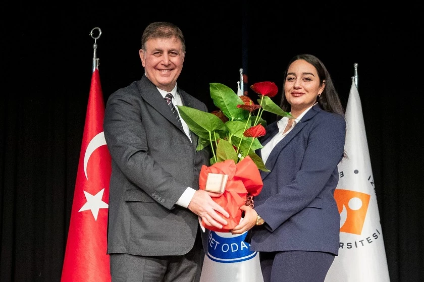 Kadın erkek eşitliği konusunda konuşan Başkan Dr. Cemil Tugay, “Kadınların erkeklere göre daha geride durmasını kabul etmiyoruz. Kadınları geride bıraktığımız zaman gelişmemiz ilerlememiz mümkün değil. Atatürk şöyle ifade ediyor; insanoğlu kadın ve erkekten mürekkep bir topluluktur. Bunlar birbirine ayrılmaz bağlarla bağlıdır. Bir toplumu ilerletmek istediğinizde yarısına sen burada kal, erkeklere gidecek derseniz erkekler de ilerleyemez. Yarısı toprağa zincirlerle bağlıyken, diğer yarısını yükseltemezsiniz. O yüzden kadınları da o eşitlikle ilgili tüm hakları tanımak, onların yeteneklerini göstermelerini, becerilerini ülkemizin yararına kullanmalarının önünü açmamız lazım. Görev verildiği zaman kadınlar her türlü yükün altından gerçekten başarıyla kalkıyorlar. İzmir'imizin, Türkiye'mizin tüm kadınlarına minnettarım” diye konuştu.