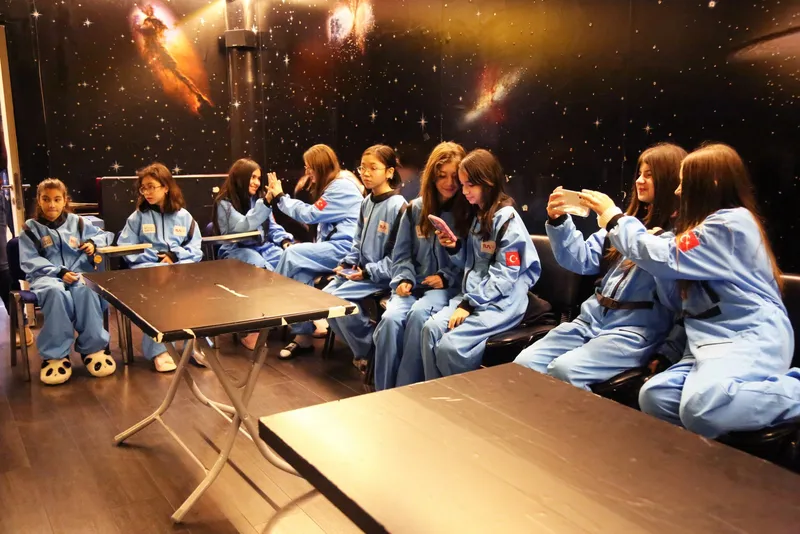 Ali Kuşçu Uzay Evi'nde düzenlenen eğitimle öğrenciler, astronot hazırlık süreçlerinden uzayda günlük yaşama kadar birçok konuyu uygulamalı öğrendi.