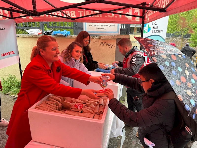 İzmit Belediyesi tarafından hayata geçirilen “Beslenme Saati Projesi”, tüm engellemelere rağmen hizmete devam ediyor. İzmit Belediye Başkanı Fatma Kaplan Hürriyet’in kararlılığıyla okul önlerinde sürdürülen proje kapsamında sabah saatlerinde Gültepe Mahallesi’nde bulunan Hacı Zehra-Hacı Ahmet Hamdi Çepni İlkokulu önüne kurulan stantlarda çocuklara yemek dağıtıldı. Başkan Hürriyet’in bizzat katıldığı programda Meclis Üyeleri Ercan Balşeçen, Cemal Dolanbey ve Gültepe Mahallesi Muhtarı Yusuf Çevik de yer aldı.
