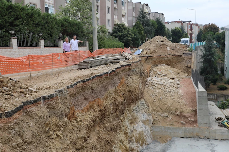İzmit Belediye Başkanı Fatma Kaplan Hürriyet, Turgut Mahallesi Huzur Sokak’ta devam eden istinat duvarı yenileme çalışmasını yerinde inceledi