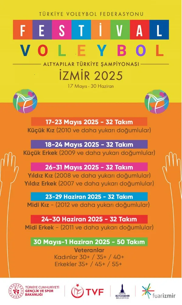 İzmir Büyükşehir Belediyesi ile Türkiye Voleybol Federasyonu'nun iş birliğiyle düzenlenecek Festival Voleybol Altyapılar Türkiye Şampiyonası'nın ev sahibi bu yıl da İzmir oldu. Fuar İzmir, üçüncü kez dev bir spor kompleksine dönüştürülecek, 17 Mayıs - 30 Haziran tarihleri arasında kentte voleybol şöleni yaşanacak.
