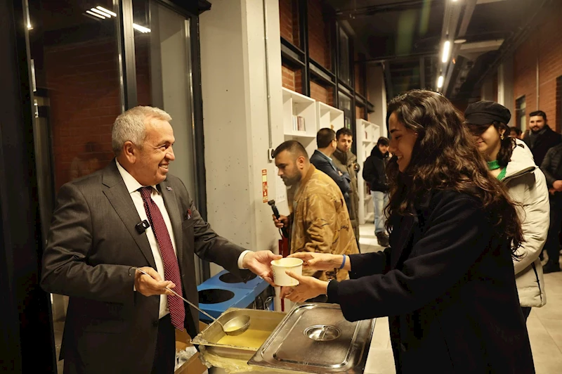 Nilüfer Belediyesi’nin üniversite öğrencilerine yönelik, ulaşım, barınma, çorba ikramı, ikinci el giysi, ikinci el ev eşyası gibi destekleri hakkında bilgi veren Başkan Şadi Özdemir, daha sonra da öğrencilere çorba ikram etti.
