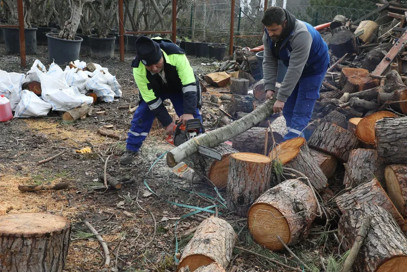 Şiddetli rüzgar nedeniyle devrilen ağaçlar, belediye ekipleri tarafından toplandı. Ağaçlar, evlerdeki sobalarda yakılabilecek boyutlarda küçük parçalar halinde kesildi ve çuvallara konuldu. Hazırlanan bu yakacak odunlar, ihtiyaç sahibi ailelere dağıtılmak üzere hazırlandı.