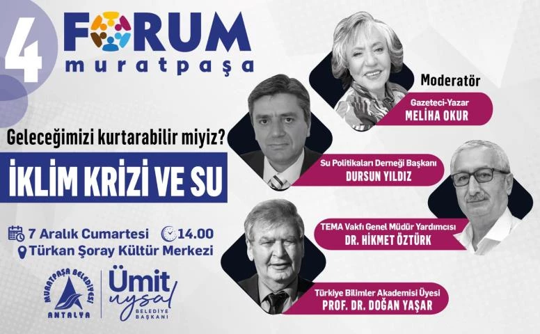 Türkan Şoray Kültür Merkezi’nde düzenlenecek aralık ayı forumunda ise su kaynaklarının sürdürülebilir kullanımı, iklim krizine karşı alınacak önlemler ve toplumsal farkındalığın artırılması üzerine fikirler paylaşılacak. Antalya,Muratpaşa Belediyesi belediye365.com