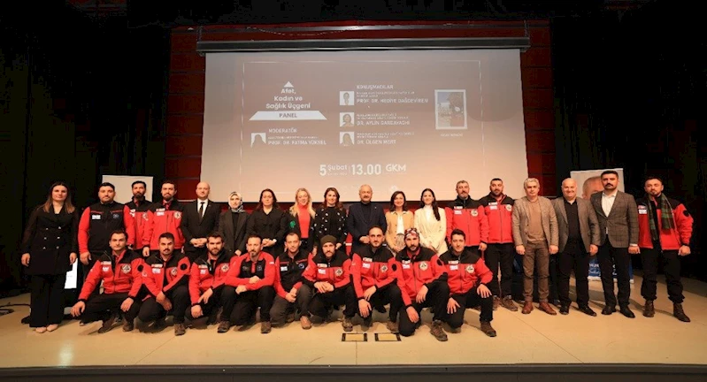 Gebze Belediyesi tarafından düzenlenen ‘Afet, Kadın ve Sağlık Üçgeni’ konulu panel kent meydanında bulunan Gebze Kültür Merkezi büyük salonunda gerçekleştirildi. Panele ev sahibi Gebze Belediye Başkanı Zinnur Büyükgöz’ün yanı sıra KBB Kadın ve Aile Hizmetleri Daire Başkanı Nagehan Malkoç, belediye başkan yardımcıları, belediye meclis üyeleri, Gebze Belediyesi Arama Kurtarma Ekibi GEAK üyeleri ve konuklar katıldı. Moderatörlüğünü Prof. Dr. Fatma Yüksel’in yaptığı panele konuşmacı olarak Prof. Dr. Hediye Dağdeviren, Dr. Aylin Gareayaghi ve Dr. Ülgen Mert katıldı.