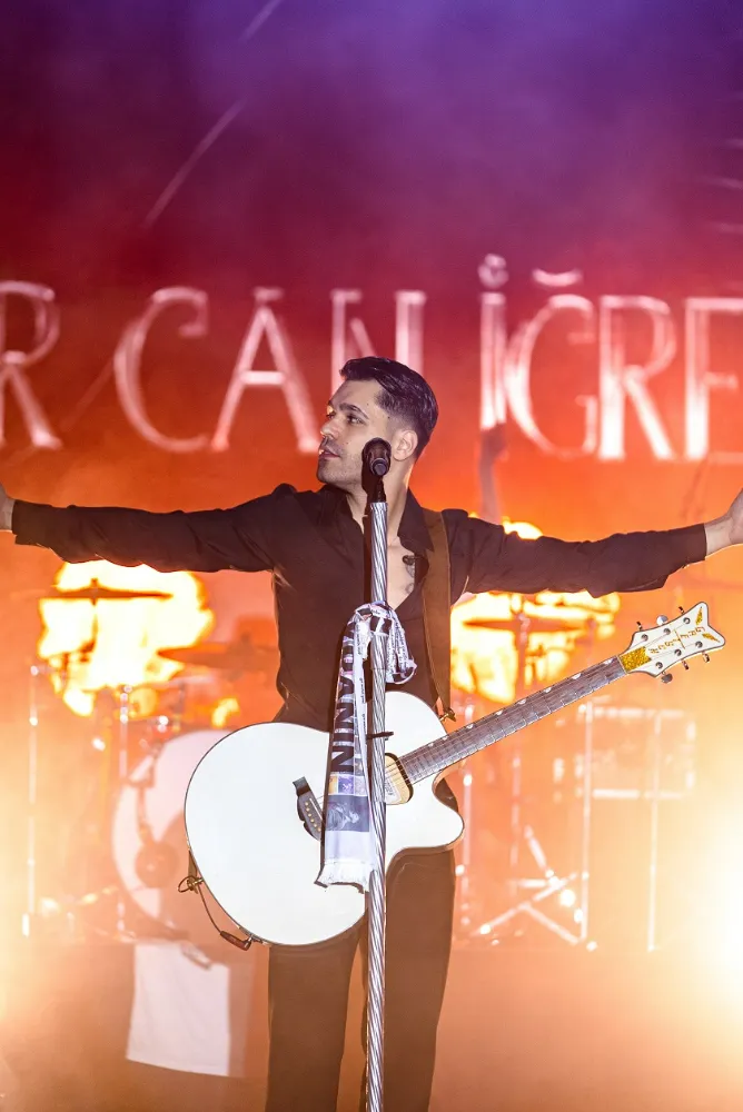 ‘Kor’, ‘Bir Karanfil’, ‘Nalan’, ‘Saman Sarısı’, ‘Ali Cabbar’ gibi hit’lerini sahnede seslendiren Emir Can İğrek, konseri izleyenlerden büyük alkış aldı.