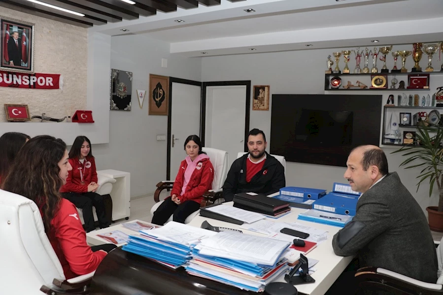SAMSUN-Başarılı Halter sporcuları ve Antrenör Eren Memiş, Gençlik ve Spor İl Müdürü Feyzullah Dereci’yi makamında ziyaret ettiler.