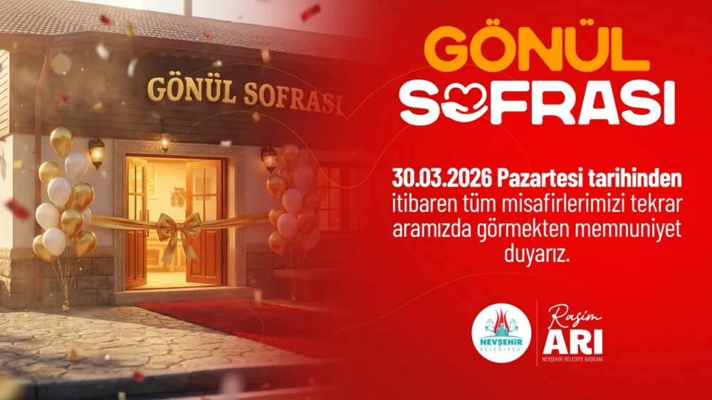 İftar çadırı organizasyonu nedeniyle 16 Şubat 2026 tarihinde geçici olarak kapatılan Nevşehir Belediye Gönül Sofrası Restoranı, 30 Mart 2026 Pazartesi günü yeniden hizmete girecek.