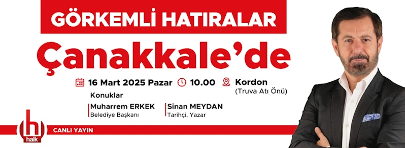 Halk Tv ekranlarında Serhan Asker'in hazırlayıp sunduğu ve Belediye Başkanımız Muharrem Erkek ile Tarihçi, Yazar Sinan Meydan'ın konuk olarak katılacağı “Görkemli Hatıralar” isimli canlı yayın 16 Mart 2025 Pazar günü saat 10.00'da Kordon'da (Truva Atı önü) yapılacak.