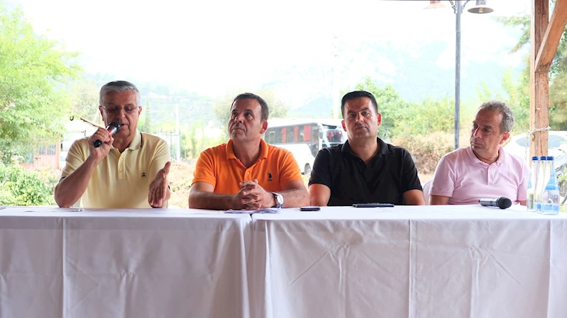 Başkan Topaloğlu, toplantıda yaptığı konuşmada, söz konusu alanın daha önce belediye başkanlığı yapan Azmi Şirinler zamanında 5 yıllığına kiralandığını hatırlatarak, “Zamanında buraları herkes satın aldı. Orman, “burası orman değildir” diye size yazı verdi. Elektriğinizi ve suyunuzu bağladınız ama belli bir süre geçtikten sonra “burası orman” dediler. İş sıkıntıya bindi. Azmi Şirinler'den sonra gelen Hasan Kal bey zamanında kiralanamamış. Biz 2004'de sizlerin desteği ile seçildikten sonra burayı “yıkacağız” dediler. Biz de olmaz bize süre verin ve burayı tekrar kiralayalım dedik. Sonuçta biz burayı Göynük Belediyesi olarak kiraladık. 10 yıllığına kiralanması için izin verdiler. 2014'de biz görevi bıraktıktan sonra ve Kemer Belediyesi'ne geçince kiralama işi yine durmuş.” dedi.