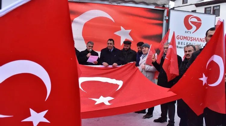 Gümüşhane Belediye Başkanı, Türk bayrağına yönelik gerçekleştirilen eylemi protesto etmek amacıyla düzenlenen basın açıklamasında yer aldı.