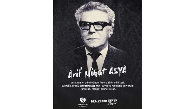 Gümüşhane Belediye Başkanı, vefatının yıldönümünde şair Arif Nihat Asya'yı saygı ve rahmetle yad etti.