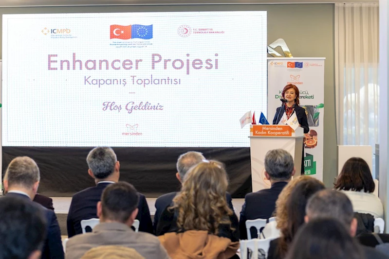 Mersinden Kadın Kooperatifi’nin yürüttüğü “Güneş Enerjili Kurutma Tesisi Kapasite Geliştirme Projesi”nin kapanış toplantısı gerçekleştirildi. Mersin Büyükşehir Belediyesi Nikah Salonu’nda düzenlenen kapanış toplantısında; Uluslararası Göç Politikaları Geliştirme Merkezi (ICMPD) tarafından finanse edilen ve Mersin Büyükşehir Belediyesi iş birliğiyle sürdürülen projenin başarıları, etkileri ve geleceğe yönelik planları değerlendirildi. Enhancer Projesi’yle, sürdürülebilir istihdam olanakları yaratılarak Mersinden Kadın Kooperatifi’nin üretim kapasitesi ile istihdamın artırıldığı ve sağladığı deneyimler aktarıldı.