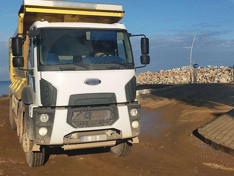 kirleten hafriyat kamyonlarını denetliyor.