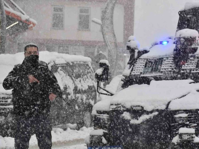 Çetin kış şartlarına adeta meydan okuyan Hakkari polisi, zorlu coğrafya ve iklim şartlarına sahip kentte 7 gün 24 saat elleri tetikte şehrin asayişi ve huzuru için görev yapıyor. Hakkari polisi, kar kış demeden kentin birçok noktasında asayiş uygulamalarına devam ediyor. Kentin giriş ve çıkışlarında güvenlik önlemini arttıran ekipler, şüpheli buldukları aracı durdurarak sürücülere Genel Bilgi Taraması (GBT) uygulaması yapıyor. Yaklaşık 2 gündür Hakkari’de hayatı olumsuz etkileyen kar yağışına rağmen çalışmalarına devam eden Hakkari polisi, durdurdukları araçları didik aradı.