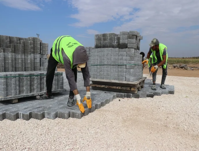 Haliliye Belediyesi Fen İşleri Müdürlüğü, İbrik Kırsal Mahallesi ve Sırrın Mahallesi'nde kilitli beton parke taşı döşeme çalışmalarıyla ulaşım konforunu artırıyor.