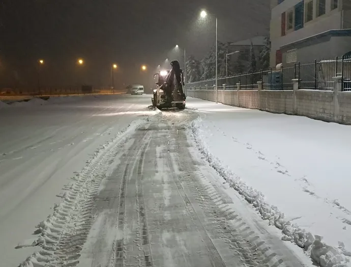 Belediye ekipleri, kar küreme ve tuzlama çalışmalarını gece boyunca da aralıksız sürdürerek ulaşımın kesintisiz devam etmesini sağlıyor. Fen İşleri, Kırsal Hizmetler ve Temizlik İşleri Müdürlüğü ekipleri, hem ilçe merkezinde hem de kırsal mahallelerde koordineli bir şekilde görev yapıyor. Ana arterler başta olmak üzere, buzlanma riski bulunan yol ve kaldırımlarda yoğun mesai harcanıyor.