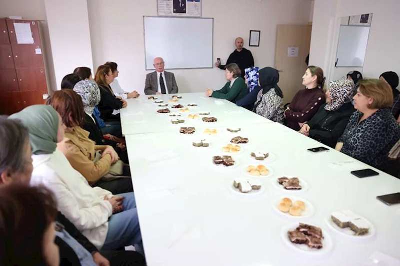 Odunpazarı Belediye Başkanı Kazım Kurt, Ayşe Tuba Arslan Halk Merkezi’nden sonra Gökmeydan Halk Merkezi atölyelerine katılan kadınlarla bir araya geldi.