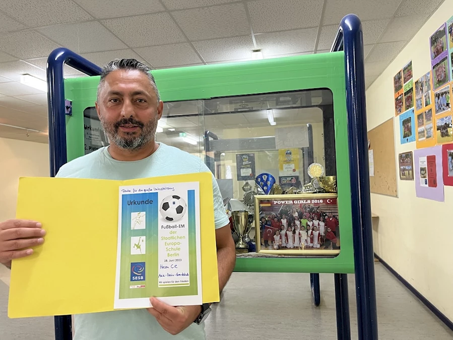 BERLİN-Berlin’de faaliyet gösteren Aziz Nesin ilkokulu’nda(“Arupa Okulu”),minik öğrencilere spor eğitimi veren antrenör Hasan ÇİL ‘e başarılı çalışmalarından ötürü Spor camiasından övgüler yağıyor.