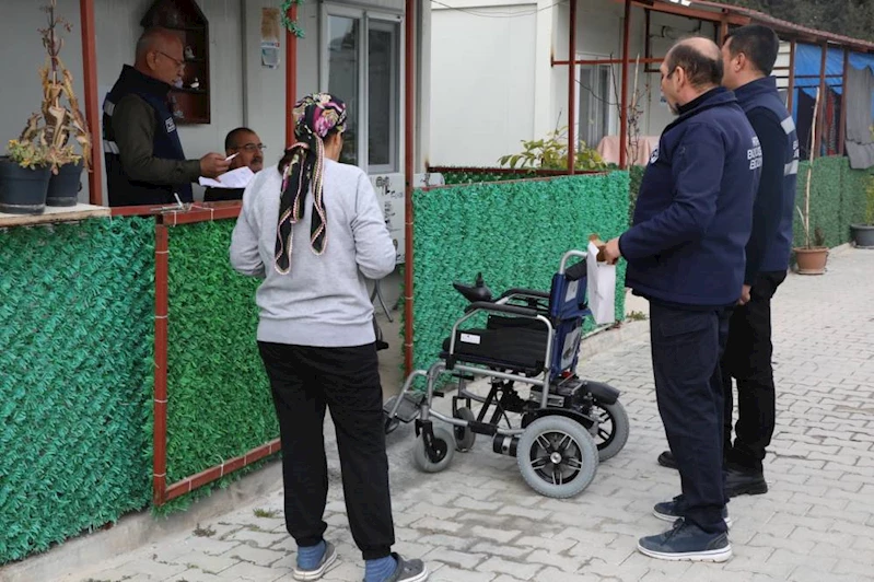 Ekipler, Antakya Gülderen Mahallesi’nde ikamet eden İbrahim Bulanık (69) ve Antakya Derince Mahallesi’nde ikamet eden Sabahattin Sümer’e (66) manüel tekerlekli sandalye desteğinde bulundu.
