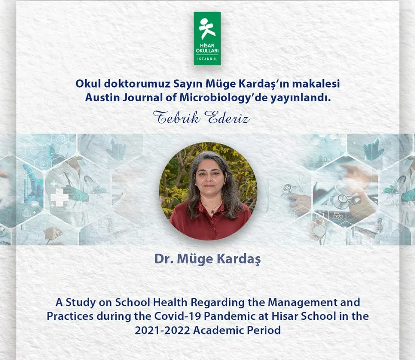 Hisar Okulları doktoru Müge Kardaş, Bilim Kurulu danışmanlığında hazırladığı “Hisar Okulları Covid-19 Pandemi Sürecinde Yönetim ve Uygulamalara İlişkin Okul Sağlığı Araştırması” başlıklı makalesi ile önemli bir katkı sağladı. Çalışma, Austin Journal of Microbiology’de yayınlanarak uluslararası bilim dünyasında yer buldu.