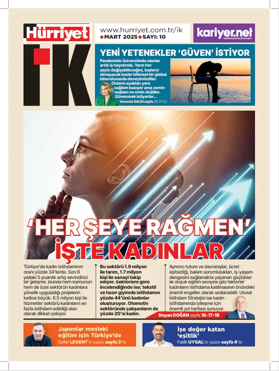Hürriyet İK yazarı Noyan Doğan kapak sayfasında; Türkiye’de kadın istihdamı hangi boyutta, istihdamda zorluk çekilen alanlar neler ve kadın istihdamını artırmak için hangi önlem ve destekler uygulanıyor sorularına cevap arıyor. Hürriyet İK Yayın Yönetmeni Sefer Levent ise yazısında Japon şirketlerinin Türkiye’deki fabrikalarına iş gücü sağlamak için başlattığı çalışmalara değinerek önümüzdeki dönemin en büyük krizinin nitelikli insan gücü eksikliği olacağına dikkat çekiyor. İnşaat sektörünün sürdürülebilir geleceği için kapsamlı bir analiz sunan Gülistan Alagöz, gençler ve kadınların işgücüne dahil edilmesi için yol haritası çiziyor.