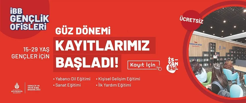 İBB Gençlik Ofisleri eğitim programlarının başvuruları ise İstanbul Senin mobil uygulamasından ve genclikspor.ibb.istanbul web sitesinden alınıyor. Son başvuru tarihi ise 30 Eylül.