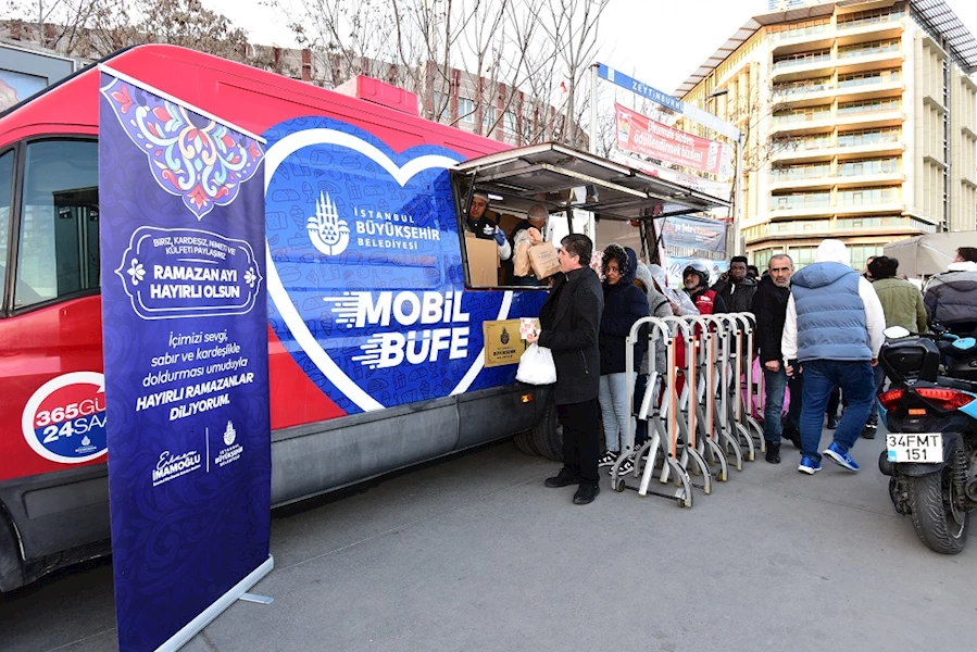 İstanbul genelinde 10 noktada Mobil Büfe ile hizmet verilecek. Ramazan ayı boyunca iftar saatinden önce her biri bin kişi kapasiteli Mobil Büfelerle Avrupa yakasında 6; Anadolu yakasında da 4 olmak üzere 10 noktada vatandaşlarımıza kumanya dağıtımı yapılacak.