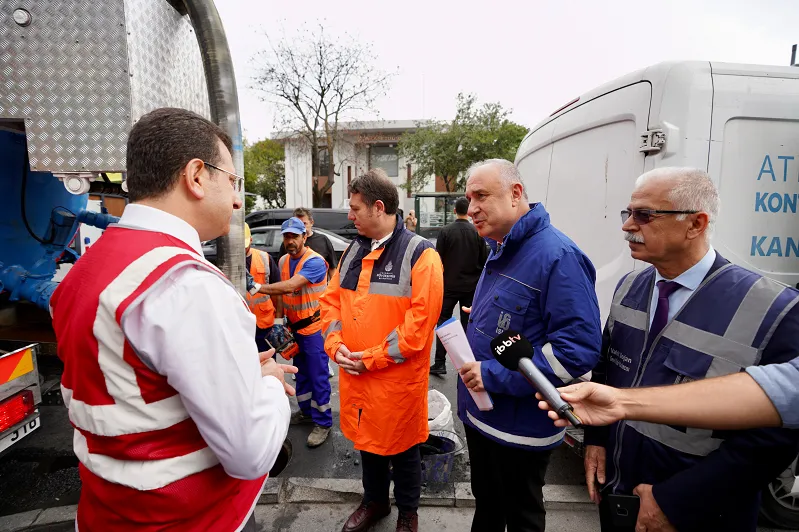İBB Başkanı Ekrem İmamoğlu, İstanbul’da beklenen olası yağış öncesinde tıkalı kanallara müdahale eden İSKİ ekipleriyle Etiler Nispetiye Caddesi’nde bir araya geldi. İSKİ Genel Müdür Dr. Şafak Başa’dan çalışmalarla ilgili bilgi alan İmamoğlu, “Hem İSKİ hem Fen İşleri, Yol Bakım üzerinden hazırlıklı olmamızda fayda var. Umut ediyoruz ki, yağışlı bir sonbaharı ve kışı yaşamak adına, sizlerin bu çalışmaları özellikle kritik noktalarda takip etmeniz şart. Bu, yoğun yaptığımız altyapı çalışmalarının da daha verimli iş görmesini sağlayacak” dedi.