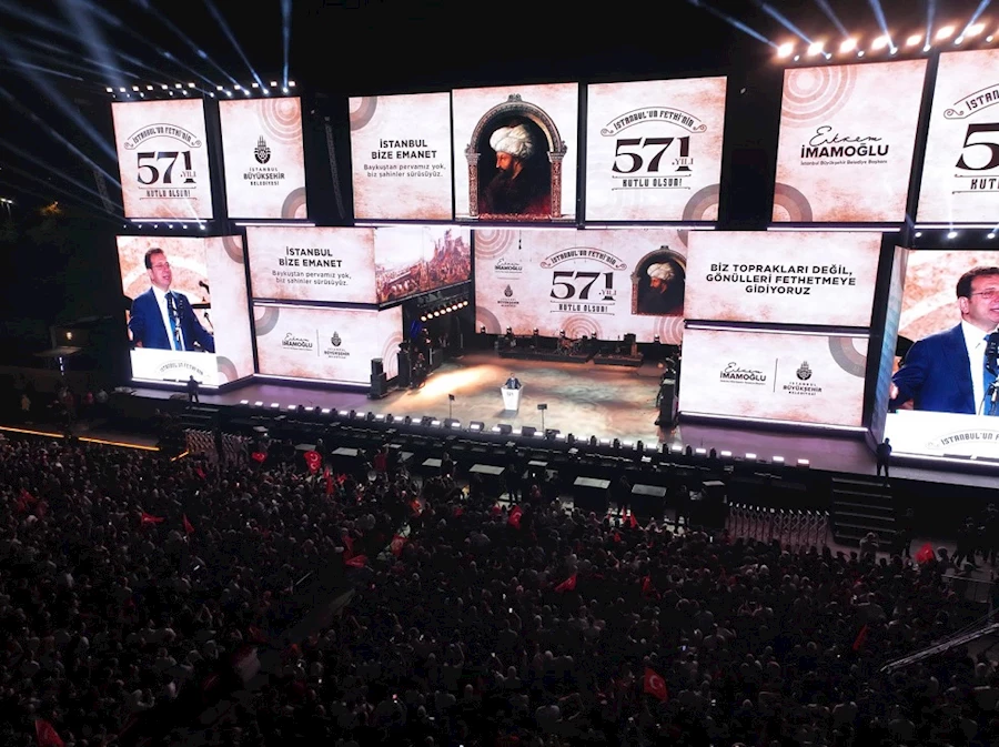İBB Başkanı Ekrem İmamoğlu, ‘İstanbul’un Fethi’nin 571. Yıldönümü’ etkinliklerinde konuştu. Fatih’in İstanbul'u fethederek kenti, doğu ve batı kültürlerinin buluştuğu bir dünya başkenti haline getirdiğine vurgu yapan İmamoğlu, “İstanbul, ta o zaman adaletin, hoşgörünün simgesi oldu. Bu şehre sahip çıkmak, bu şehrin her türlü ruhuna sahip çıkmak, Fatih Sultan Mehmet Han'ın, yeni bir çağ açan değerlerine sahip çıkmaktır. Bu şehre sahip çıkmak, İstanbul'u işgalden kurtarıp, yeniden milletimize armağan eden Mustafa Kemal Atatürk'ün değerlerine sahip çıkmaktır” dedi.