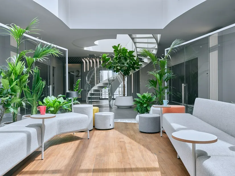 Üst yönetim katında kullanılan açık gri tonları ve Amerikan ceviz mobilyalar, projenin modern atmosferini belirleyen sofistike bir arka plan oluşturmuş. BAB Architects, yönetim odalarını çevreleyen "cam fanus" adlı eliptik bekleme alanı ile katın genelinde yeşil bir ortam sağlamak için kapsamlı bir peyzaj projesi tasarlamış. Açık ofis katlarında ise, şeffaf bir çalışma ortamı yaratılarak işlevsel ayrımlar kot farklılıkları ve özel imalat mobilyalar ile sağlanmış. Özel renk seçimleri, dingin bir atmosfer oluşturarak ödüllü tasarımın bir parçası haline gelmiş. Birinci bodrum katta ve zemin katta, dinamik ve çok amaçlı ortak alanlar yaratma amacı güdülerek eğrisel formlar ile modern bir tasarım oluşturulmuş. Geniş peyzaj düzenlemeleri ile bu katlar da yeşil bir atmosfere bürünmüş. Tüm bu dikkat çekici özellikler, projenin International Design Awards 2023 "Workspaces & Offices" ve "Yılın İç Mimarı” kategorilerinde iki ödül birden kazanmasına katkı sağlayan unsurlar olmuş.