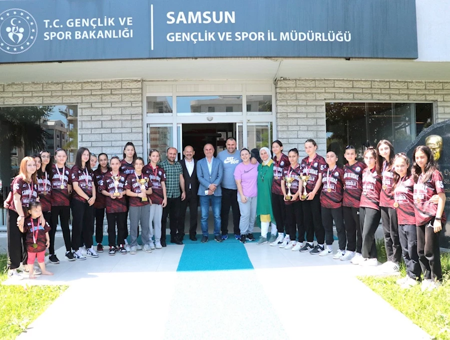 SAMSUN-3x3 Basketbol Yıldız Kızlar Türkiye üçüncüsü, Basketbol Yıldızlar Türkiye Beşincisi, 3x3 Küçükler Samsun şampiyonu olan Canik Uludağ Ortaokulu, İl Müdürümüz Feyzullah Dereci’yi ziyaret ettiler. 3x3 Küçükler Samsun şampiyonu olan takım, Sinop ilinde 03-07 Haziran 2024 tarihleri arasında düzenlenecek olan Küçük Kızlar Türkiye Finallerine ilimizi temsil edecek. Dereceye giren takımı tebrik eden İl Müdürümüz Feyzullah Dereci, Türkiye Finallerine gidecek olan küçük kız takımına başarılar diledi. Ziyarete Canik Gençlik ve Spor İlçe Müdür Tunsel Aslankoç, Okul Müdürü Zerrin Karagöl Şen, Antrenör Ebru Tunçer ve eşi Murat Tunçer katıldı.