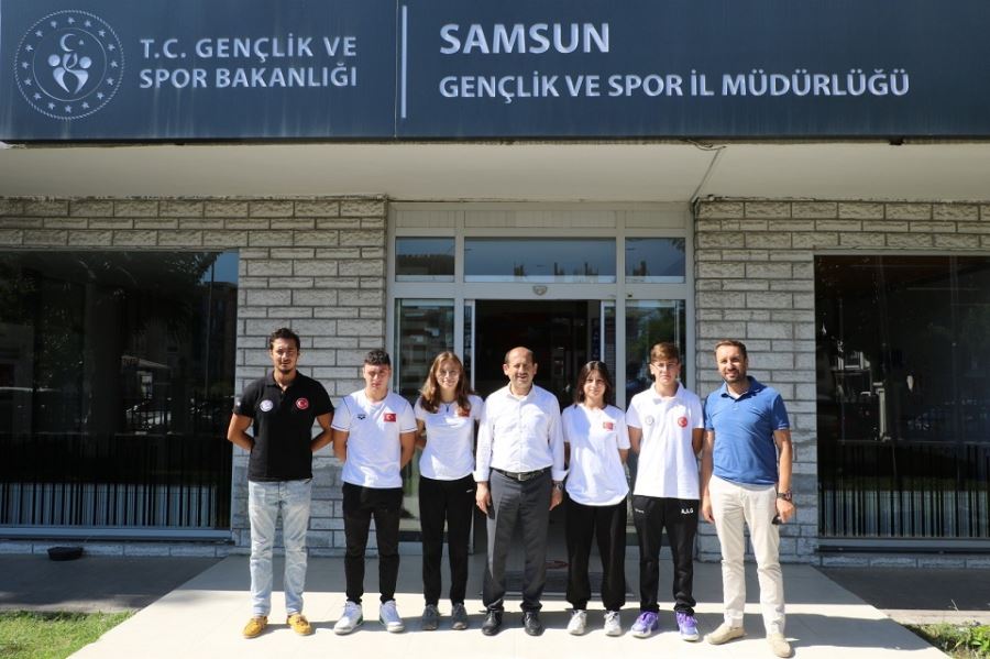 Samsunlu sporcular, antrenör Caner Keleş’le birlikte Samsun Gençlik ve Spor İl Müdürümüz Feyzullah Dereci’yi ziyaret ettiler. İl Müdürümüz Feyzullah Dereci, sporcuları tebrik ederek başarılarının devamını diledi. Sporcular 24 Temmuz’da Türkiye Şampiyonası için İzmir’e gidecek. Ardından Ağustos ayında Hırvatistan’da düzenlenecek olan Avrupa Gençler Atlama Şampiyonası’nda mücadele edecekler. Sporcularımızı başarılar dileriz.