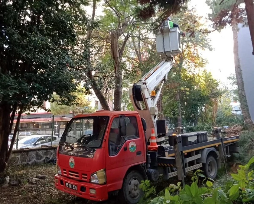 SAMSUN-İlkadım Belediyesi Park ve Bahçeler Müdürlüğü ekipleri, ilçe genelinde daha estetik bir görüntü sağlamak, ağaçların sağlığının devamlılığı ve doğanın korunması için ağaç budama faaliyetlerini sürdürüyor.