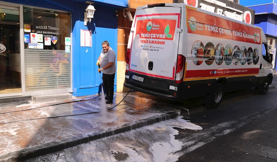 SAMSUN-İlkadım’ın cadde ve sokaklarındaki kaldırımlarda, çöp sızıntılarından dolayı oluşan kötü kokuların önüne geçmek için Mobil Temizlik Aracı ile jet köpüklü temizleme işlemi yapıldığını söyleyen İlkadım Belediye Başkanı İhsan Kurnaz, “Halk sağlığını ve çevre temizliğini ön planda tutuyoruz” dedi.