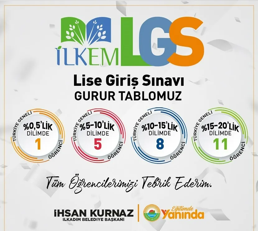 LGS’de geleneğin bozulmadığını söyleyen İlkadım Belediye Başkanı İhsan Kurnaz, “2024 LGS’ye İLKEM’de hazırlanan öğrencilerimizden 25’i yüzde 20’lik dilimde yer almayı başardı. Sınavlara en iyi şekilde hazırlanan ve başarılı sonuçlar alan öğrencilerimizi tebrik ediyorum. Tüm öğrencilerimizin de çalışmalarının karşılığını aldıklarına inanıyorum. Sınav sonuçlarının açıklanmasının ardından öğrencilerimiz lise tercihlerini yapacaklar. Bu noktada, İLKEM olarak öğrencilerimize profesyonel destek sağlıyor, en iyi liselerde eğitim almaları için onlara rehberlik yapıyoruz. Ayrıca, bu rehberlik hizmetimiz yalnızca İLKEM’de öğrenim gören ya da İlkadım’lı öğrencilerimiz için olmayacak. Samsun’un her yerinden, isteyen tüm öğrencilerimize destek olmak için eğitmenlerimiz merkezlerimizde rehberlik hizmeti sağlayacaklardır. İlkadım Belediyesi olarak eğitimde öğrencilerimizin her anında yanında olmaya devam ediyoruz. Tüm öğrencilerimizi bir kez daha tebrik ediyoruz” dedi.