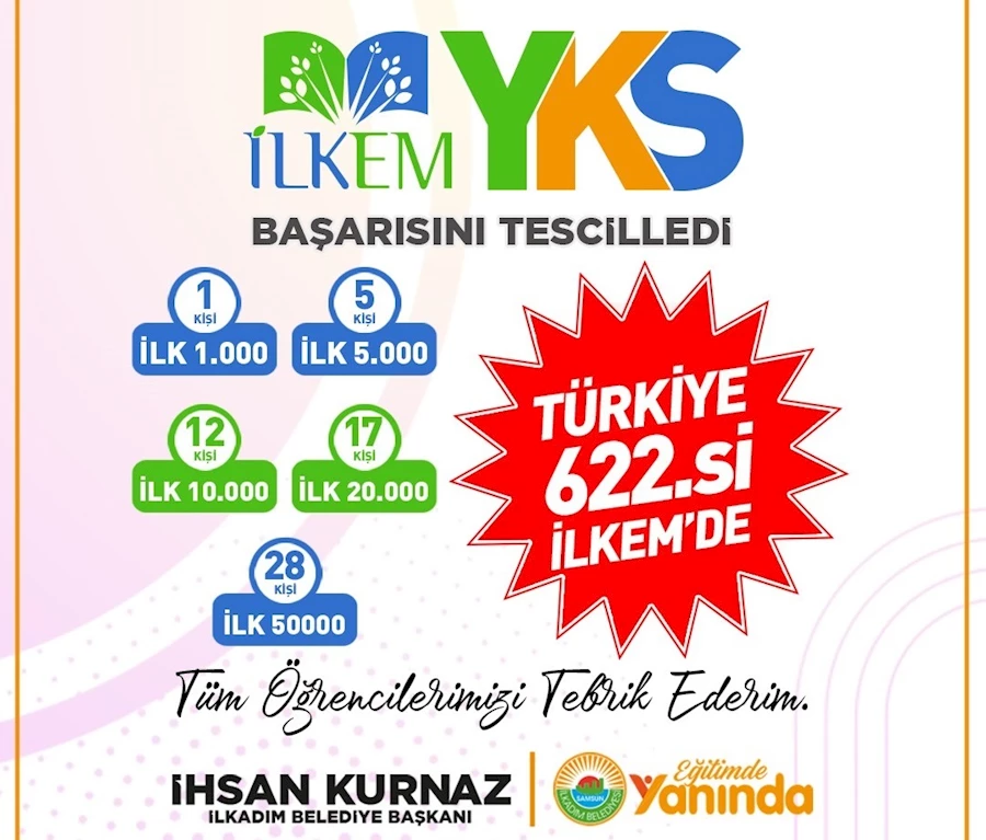 YKS’de elde edilen başarılı sonuçlardan dolayı öğrencileri ve İLKEM’in öğretmen kadrosunu tebrik eden İlkadım Belediye Başkanı İhsan Kurnaz, “İLKEM hem bireysel başarıda hem de kitlesel başarıda bir rekora daha imza attı. LGS'de 55 öğrencisine, YKS'de ise 50 öğrencisine hayallerine ulaştıracak puanlar aldırdı. YKS sonuçlarının açıklanması sonrasında İLKEM, önemli dereceler elde etti. Türkiye 622.’si olan öğrencimiz Zehni Okuyucu’yu tebrik ediyor, yapacağı tercihlerin kendisine hayırlar getirmesini temenni ediyorum. Yalnızca bu öğrencimizi değil, YKS’de çok önemli dereceler elde eden tüm öğrencilerimizi kutluyorum. İLKEM öğretmenlerimize de bu kardeşlerimizi en iyi şekilde sınava hazırladıkları için teşekkür ediyorum. Eğitim yuvamız İLKEM’de gelecek eğitim öğretim dönemi için ön kayıtları alınmaya başladı. Yeni dönemde de benzer başarılara imza atmak isteyen tüm öğrencilerimizi kurs merkezlerimize kayda bekliyoruz” dedi.