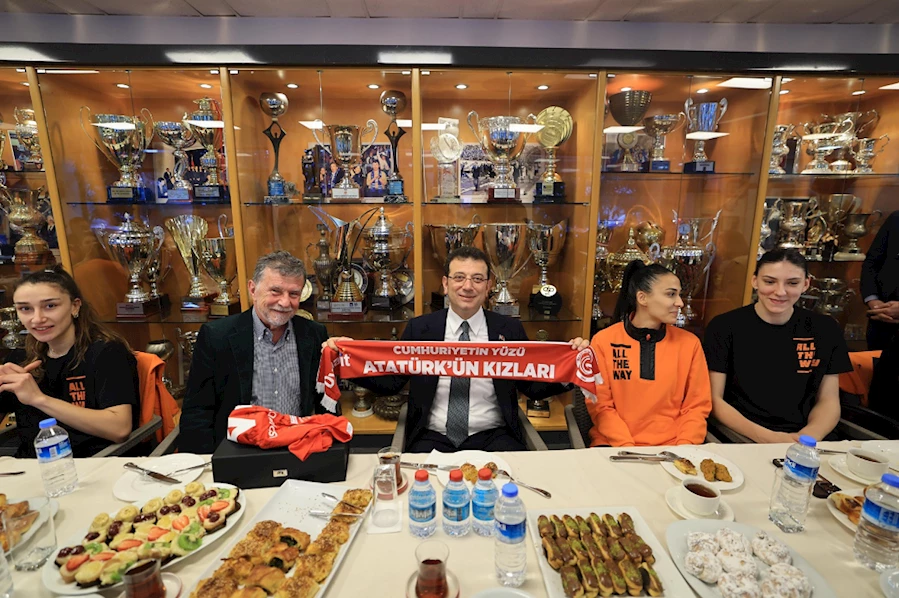 İstanbul’un, bulunduğu konum ve tarihi itibariyle olimpiyatları hak eden bir şehir olduğuna dikkat çeken İmamoğlu, “İstanbul Büyükşehir Belediyesi Spor Kulübümüz olarak da spor etkinlikleri olarak da -ki kulüp başkanımız da burada- en çok amatör branşta ve olimpiyat sporcusu yetiştirme konusunda özenli bir çalışmamız sürüyor. Bugün sizin yanınızda olmak, bana ciddi bir moral verdi. Hem çok beğenerek izlediğim sporcularla yan yana olmak hem de Faruk Bey'in liderliğindeki bu değerli kulübümüzün içinde olmak, buradaki o aile duygusunu hissetmek çok keyifli. Sevgili hocamıza, bütün teknik heyetine, bütün sporculara başarılar diliyorum. Dünya Şampiyonu olduğunuz bu yılı da çok çok değerli buluyorum. Cumhuriyetimizin 100’ncü yılına yakışan bir kupa oldu. Finalinde de iki Türk takımının olması ayrıca değerli oldu tabii. Umuyorum nice finaller ve nice başarılar elde eder Eczacıbaşı kulübümüz. Bu güzel aile ortamının da hep sürmesini dilerim” ifadelerini kullandı.