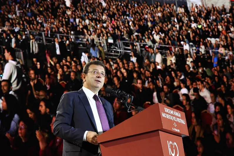 İstanbul’u, ‘dünyanın en güzel şehri ve dünyanın, aynı zamanda insanlığın başkenti’ olarak niteleyen İmamoğlu, “Böyle bir şehirde, bugüne kadar sayısız Hacı Bektaş-ı Veli buluşmaları yapılmalıydı; maalesef yapılmadı. Bu önemli eksiğin giderilmesinin, İstanbul'umuza Serçeşme Hünkar Hacı Bektaş-ı Veli Festivali’ni kazandırmanın mutluluğunu, gururunu ve onurunu yaşıyorum. Onun düşüncelerinin, temsil ettiği değerlerin gönülden gönüle ulaşmasına vesile olmanın onurunu yaşıyoruz. Bu duyguları bizimle paylaştığınız ve bu güzel anı, bu değerli ve manevi anı bizimle paylaştığınız için, burada bulunan çok sevgili, çok kıymetli hanımefendilere, beyefendilere, sevgili gençlere ve sevgili çocuklara yürekten teşekkür ediyorum” diye konuştu. Hacı Bektaş-ı Veli’yi, “bir ulu ağaç” sözleriyle tanımlayan İmamoğlu, “Kökleri Anadolu'da, dalları tüm insanlığı kuşatmış olan o ulu ağacın gölgesi altında herkese yer vardır. Hacı Bektaş-ı Veli, bir davettir. İnsan olmaya ve insan kalmaya bir çağrıdır. Onun yolu baskıyla, korkuyla değil, onun yolu sevgiyle, saygıyla ve bir olmanın yoludur, iri olmanın yoludur, diri olmanın yoludur. Onun yolunda yürüyen herkes, yalnız birbiriyle ve tüm insanlıkla değil, cümle mahlukatla kardeş olduğunu hisseder” ifadelerini kullandı.