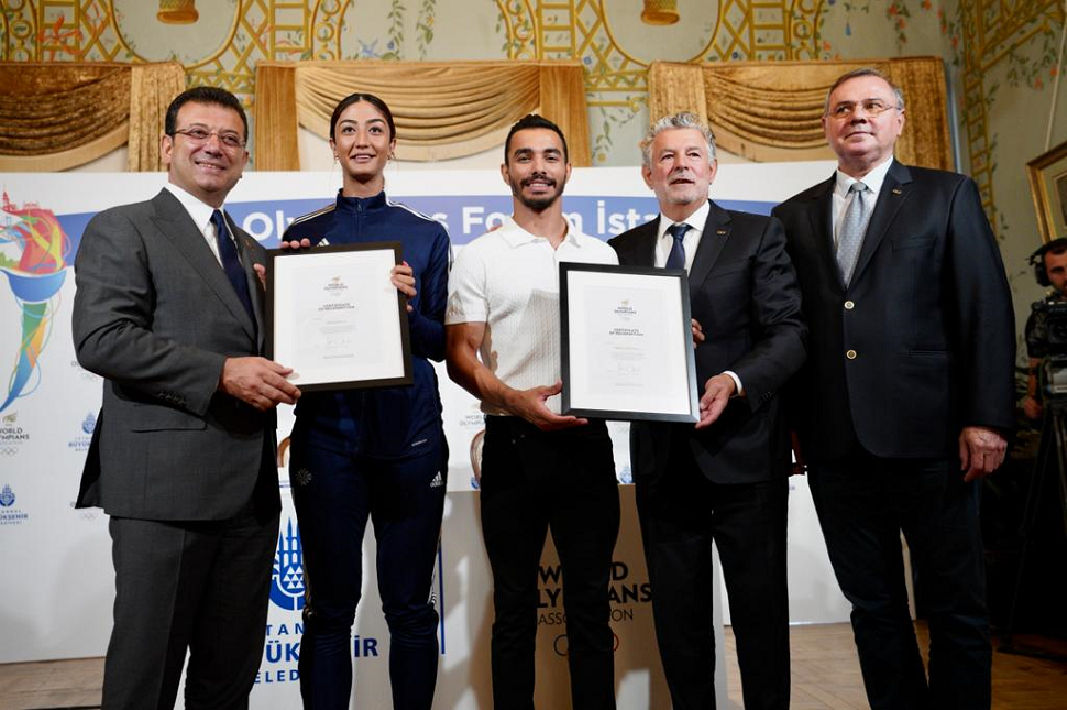 Konuşmaların ardından Tokyo 2020'de paralel barda bronz madalya kazanarak Türkiye'ye cimnastik tarihindeki ilk olimpiyat madalyasını getiren Ferhat Arıcan’a ve 2023 Dünya Tekvando ve 2018 Avrupa Tekvando Şampiyonalarında altın madalya kazanan Nafia Kuş’a Dünya Olimpianlar Derneği üyelik sertifikası verildi.