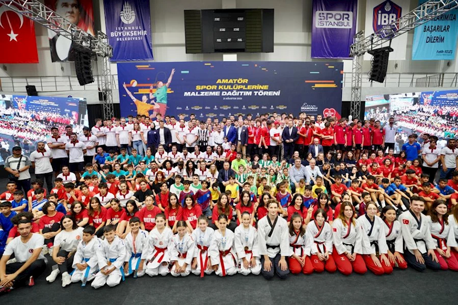 İstanbul Büyükşehir Belediyesi (İBB), kentte faaliyet gösteren amatör spor kulüplerine sağladığı malzeme desteğini artırarak devam ettiriyor. 2023 yılı içerisinde, 20 branşta, 115 farklı kalemde, toplam 377 bin 920 adet malzemenin 1250 amatör spor kulübüne dağıtılması için düzenlenen tören, İBB Başkanı Ekrem İmamoğlu’nun katılımıyla gerçekleştirildi. Sultangazi’deki Cebeci Spor Kompleksi’nde düzenlenen tören, sporcular tarafından gerçekleştirilen görsel şovlar ve İBB Spor Kulübü Karate Takımı’nın gösterisiyle başladı. Türkiye Amatör Spor Kulüpleri Konfederasyonu (TASKK) Başkanı, Türkiye Futbol Federasyonu (TFF) Yönetim ve İcra Kurulu üyesi Ali Düşmez, İBB Genel Sekreter Yardımcısı Murat Yazıcı ve İBB Başkanı İmamoğlu, törende birer konuşma yaptı.