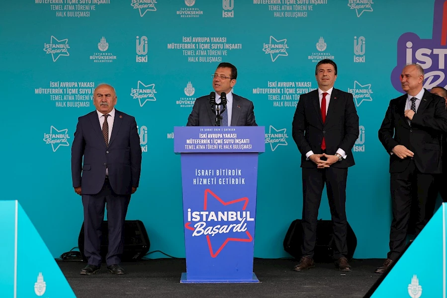 İstanbul Büyükşehir Belediye (İBB) Başkanı Ekrem İmamoğlu, CHP Çatalca Belediye Başkan adayı Erhan Güzel ile birlikte, “Çatalca Avrupa Yakası Müteferrik 1 İçme Suyu Temel Atma Töreni ve Halk Buluşması”na katıldı. Cumhuriyet Meydanı’nı dolduran coşkulu kalabalık, İmamoğlu ve Güzel’e sevgi gösterilerinde bulundu. Tören ve buluşma, İSKİ Genel Müdürü Dr. Şafak Başa’nın Çatalca özelinde yaptıkları ve yapacakları hizmetleri anlattığı konuşmayla başladı. Dr. Başa ve Güzel’in ardından Çatalcalılarla buluşan İmamoğlu, “Atık su konusu da Çatalca'da önemli bir konu. Ve atık su sorununu çözmek için, su baskınlarını önlemek için, artan içme suyu ihtiyacını karşılayabilmek için Çatalca'da İSKİ projelerimize 1 milyar 200 milyon lira civarında yatırım yapıyoruz. Tamamladığımız ve devam eden projelerin toplam bedeli, 2 milyar 500 milyon lira. Bu rakam, Çatalca tarihinde hiçbir zaman Çatalca'ya yapılmış bir yatırım değil. Bu yatırımı biz yaptık, yapmaya devam ediyoruz” dedi.