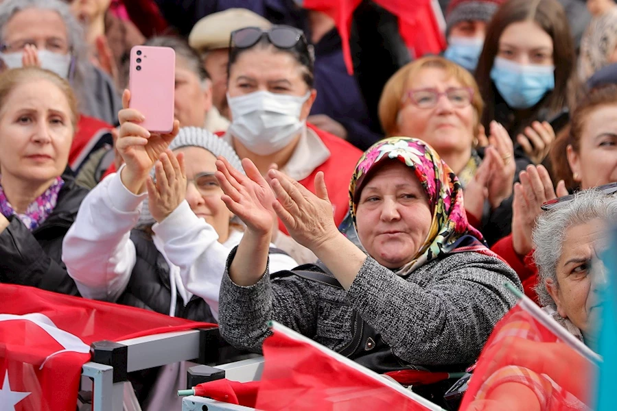 “Sözüm ona bu arkadaşlar, bu kampanyada sadece İstanbul konuşacaklardı. Böyle dediler; hatırlayın. Daha birkaç hafta dayanabildiler, hemen su kaynattılar, hemen kayış attılar. Çünkü görüyorlar; İstanbul başardı. Hep birlikte israfı bitirdik, hizmeti getirdik. Bundan geri dönüş yok. İstanbul'un yeniden ihmale, ihanete, israfa dönmeye tahammülü yok; dönmeyecek. Eşitlik ve adalet yolunda, hep birlikte yürümeye devam edeceğiz. Birlik ve kardeşlik yolunda, hep birlikte yürümeye devam edeceğiz. Hazır mıyız? Birlikten, kardeşlikten söz açılmışken, şimdi biraz sizlerle dertleşmek istiyorum. Bakın; beş yıldır konuşmalarımı dinliyorsunuz. Tavrımı biliyorsunuz. Soruyorum; Allah aşkına, benim bir gün -hangi siyasi görüşten olursa olsun, hangi etnik kökenden olursa olsun, hangi inanca sahip olursa olsun fark etmez- bir kişiye ayrımcılık yaptığımı ya da ötekileştirdiğimi gördünüz mü? Peki, sevgili hemşerilerim, bana her gün hakaret eden siyasi rakiplerimin, bir gün bile onların vatanseverliğini ya da onların inancını sorguladığımı işittiniz mi? Kıskanıyorlar, doğru. Kıskanıyorlar. Çekemiyorlar. Kimse, kendisine karşı böyle bir şey yapılmasını hoş karşılamaz. O zaman kendisine yapılmasını istemediğin şeyi, bir başkasına yapmayacaksın.”