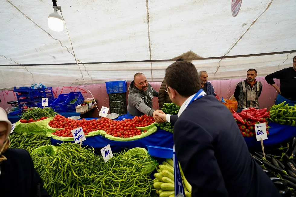 İmamoğlu’nun pazar ziyaretine bir esnafın, “Bir video açacağım Başkanım. Murat Kurum diyor ki, ‘Bu seçimi kazanırsak, Gazzeliler kazanacak. Bu seçimi kazanırsak, Filistin’dekiler kazanacak.’ Bütün insanları idare ettiler, ama bunlar Türk halkına, vatandaşına bakmadılar. Hep kandırdılar, oyaladılar. Hala oyalama peşindeler bunlar. Davalarında samimi değiller. 2018’den bu yana, 5 sene Çevre ve Şehircilik Bakanlığı yaptı. Ama hiçbir şeye imza atmadı. Bu saatten sonra da atamaz. Atmayacak da” sözleri damga vurdu. İmamoğlu’nun esnafa yanıtı, “Allah, akıl versin. Yüreğine sağlık” oldu.