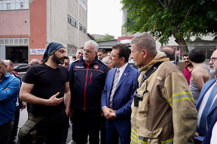İBB Başkanı Ekrem İmamoğlu, Başakşehir İkitelli Organize Sanayi Bölgesi'nde 11 Haziran’da çıkan yangınla küle dönen ve çöken 6 katlı fabrika çevresinde incelemelerde bulundu. İmamoğlu, gazetecilere yaptığı açıklamada, “Bir can kaybı olmaması, hepimiz için sevindirici. İnsanların ondan önce tahliye olması sevindirici. Çok yakın mesafede bulunan tesislere hiçbir şekilde yangının sıçramadan kontrol altına alınıp, söndürülmesi kıymetli. Ben, bütün itfaiyeci ekibimize, Daire Başkanımızdan erlerine varıncaya kadar emeklerine teşekkür ediyorum” ifadelerini kullandı.