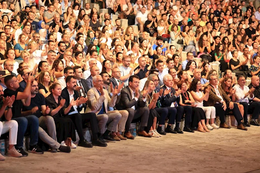 İBB Başkanı Ekrem İmamoğlu da Harbiye Cemil Topuzlu Açıkhava Tiyatrosu’ndaki “Arif Sağ’a Saygı Gecesi”ne, eşi Dr. Dilek Kaya İmamoğlu ile birlikte katıldı. Şişli Belediye Başkanı Muammer Keskin, CHP milletvekili Yüksel Mansur Kılınç ve İYİ Parti İstanbul İl Başkanı Coşkun Yıldırım da Sağ’ı yalnız bırakmayan isimler arasında yer aldı. Saygı gecesi programında Arif Sağ’a; Belkıs Akkale, Ümit Tokcan, Erdal Erzincan, Halil Çokyürekli, Muharrem Temiz, Şevval Sam, Tolga Sağ, Yılmaz Çelik ve Zeynep Başkan eşlik etti. Şef Nurettin İlhan yönetimindeki İBB Türk Halk Müziği Topluluğu’nun orkestrasyonuyla gerçekleşen gecenin anlatıcılığını gazeteci Nebil Özgentürk yaptı. Açıkhava Tiyatrosu’nu dolduran binlerce İstanbullu ve İmamoğlu çifti, birbirinden usta isimlerin söylediği türkülere ve deyişlere eşlik etti. Duayen sanatçı Sağ da ilerleyen yaşına rağmen hem sesi hem bağlaması hem de davuluyla kendisini dinlemeye gelen seyircilere unutulmaz bir gece yaşattı. Konserin sonunda sahneye davet edilen İmamoğlu çifti, Sağ ve ona eşlik eden sanatçılarla bir araya geldi.