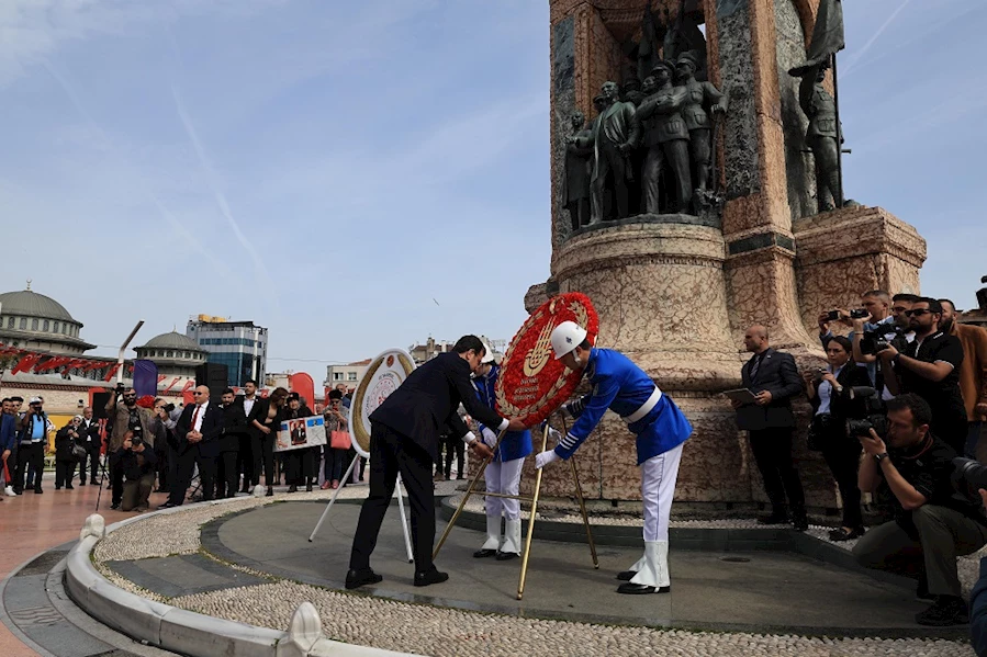 İstanbul Büyükşehir Belediye (İBB) Başkanı Ekrem İmamoğlu, 19 Mayıs Atatürk'ü Anma, Gençlik ve Spor Bayramı’nın 105’inci yıl kutlamaları kapsamında Taksim Cumhuriyet Anıtı’nda düzenlenen resmi törene katıldı. Resmi tören, Mustafa Kemal Atatürk, silah arkadaşları ve tüm şehitler için yapılan saygı duruşunda bulunulması ve ardından İstiklal Marşı’nın okumasıyla başladı. Tören, İstanbul Gençlik ve Spor İl Müdürü Muhittin Özbay’ın anıta çelenk koymasıyla sona erdi. Resmi törenin bitiminin ardından, İBB’nin organize ettiği etkinliğe geçildi. İmamoğlu ile birlikte aralarında CHP İstanbul İl Başkanı Özgür Çelik ve Beyoğlu Belediye Başkanı İnan Güney’in de bulunduğu siyasi partileri, belediyeler ve sivil toplum kuruluşlarının temsilcileri, resmi törenin ardından Cumhuriyet Anıtı’na çelenk bıraktı.
