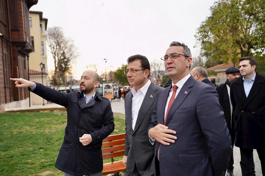 İstanbul Büyükşehir Belediye (İBB) Başkanı Ekrem İmamoğlu güne, CHP Fatih Belediye Başkan adayı Mahir Polat ile birlikte, tarihi Eyüpsultan Camii’nda sabah namazını kılarak başladı. Namaz sonrasında, Eyüpsultan Haziresi Restorasyon Alanı’nı ziyaret eden İmamoğlu ve Polat, İBB Genel Sekreter Yardımcısı Oktay Özel tarafından çalışmalarla ilgili bilgilendirildi. Eyüpsultan’ın ardından Fatih’e geçen İmamoğlu ve Polat’ın ilçedeki ilk durağı, Ayvansaray Mahallesi’ndeki Tekfur Sarayı oldu. Saray çevresindeki park ve etkinlik alanında incelemelerde bulunan ikili, kahvaltılarını Süleymaniye’de bir çorbacıda yaptı. Öğrencilerin ve çevre esnafının yoğun ilgi gösterdiği İmamoğlu ve Polat, çaylarını da Süleymaniye sokaklarında yudumladı.