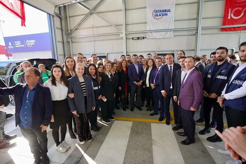 Konuşmaların ardından tesiste bulunan taksileri inceleyen İmamoğlu, araçlardan birine binerek, yapılan işlemleri deneyimledi.