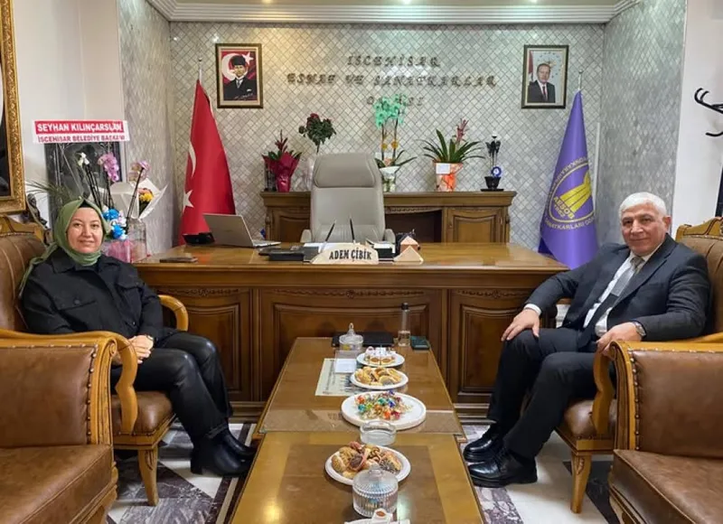 İscehisar Belediye Başkanı Seyhan Kılınçarslan, İscehisar Esnaf ve Sanatkarlar ile Şoförler ve Otomobilciler Esnaf Odası Başkanlığı görevine seçilen Adem Çibik'i hayırlı olsun ziyaretinde bulundu.